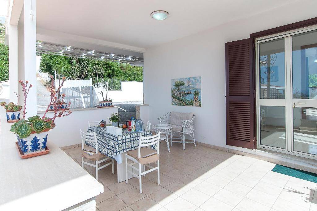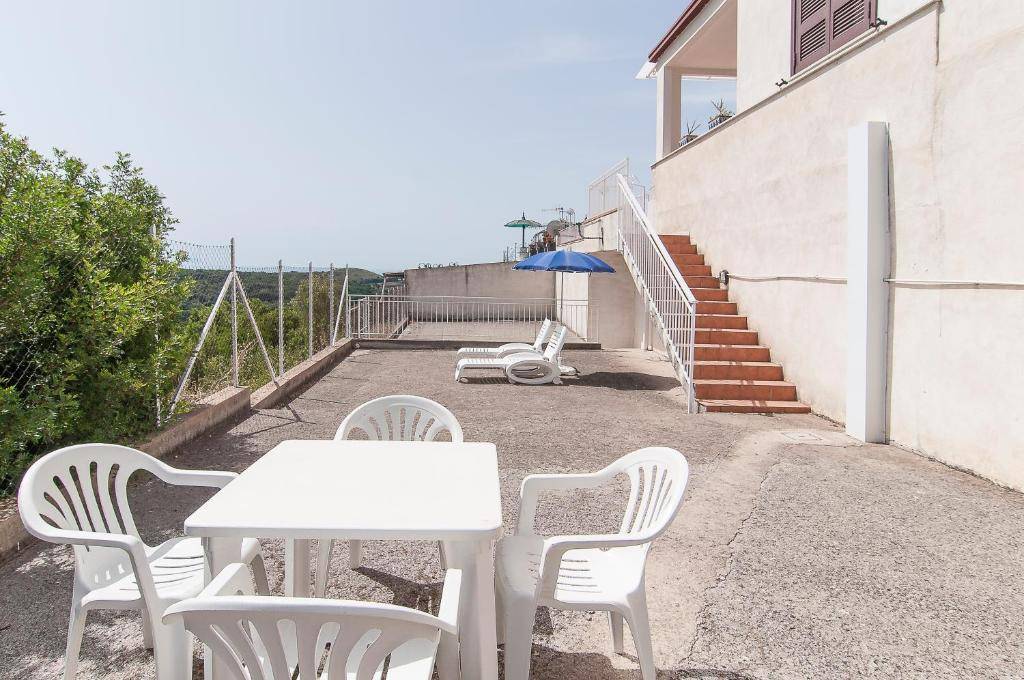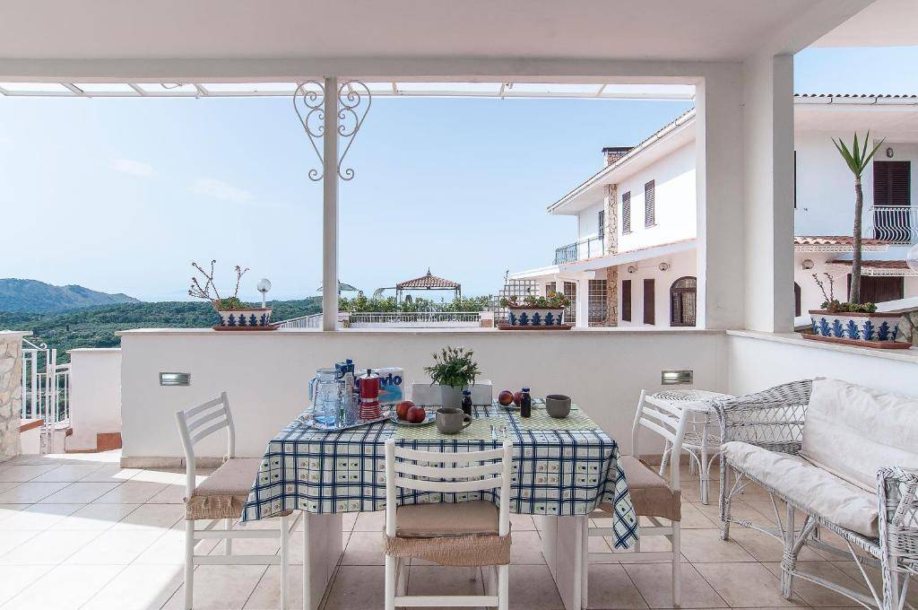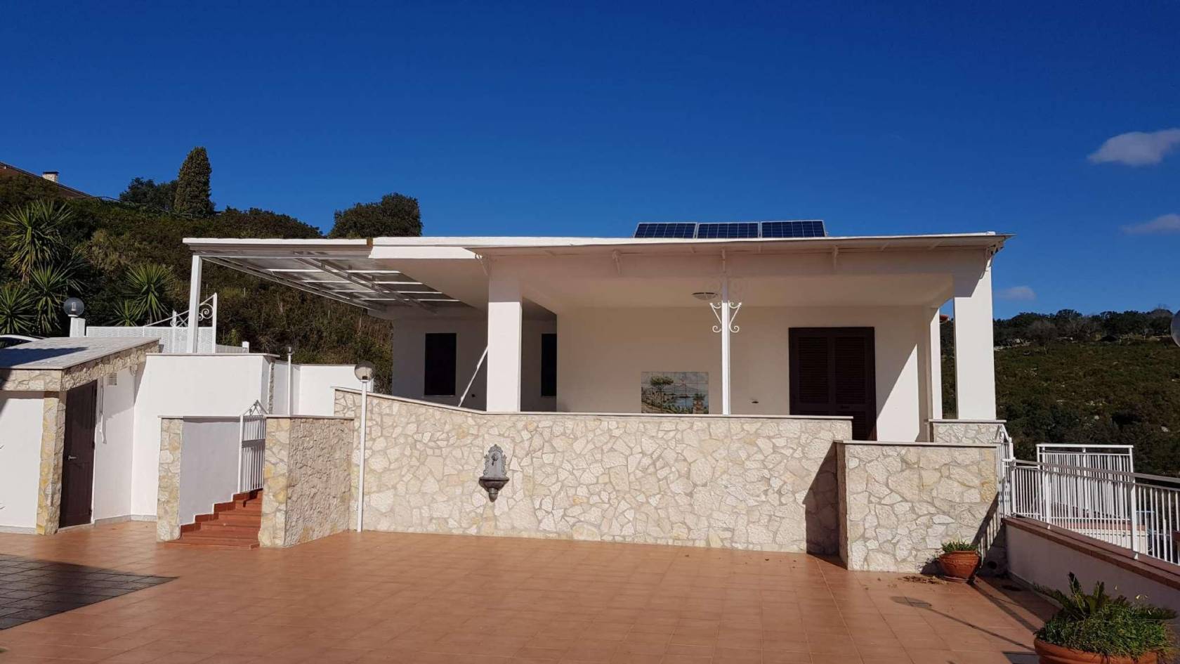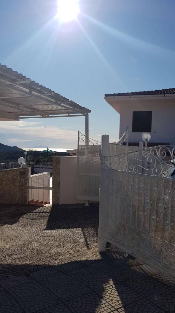 LA VILLA PRINCIPALE SI SVILUPPA SU DUE LIVELLI ED E' CARATTERIZZATA DALLA PRESENZA DI UN BEL PATIO CON TERRAZZO A LIVELLO DI 400 MQ CHE CONFERISCE UNA BELLA VISTA MARE CON DOCCIA ESTERNA CHIUSA .LA VILLA SI COMPONE AL PIANO TERRA DI SALONE-CUCINA ABITABILE-BAGNO E RIPOSTIGLIO PROCEDENDO AL PRIMO PIANO VI SONO 3 CAMERE DA LETTO E UN BAGNO .LA VERA PECULIARITA' DELL'IMMOBILE E' LA PRESENZA DI UNA DEPANDANCE INDIPENDENTE, NELLA QUALE E' POSSIBILE OSPITARE ALTRE PERSONE ESSENDO DOTATA DI UNA CUCINA - 2 BAGNI - DUE CAMERE DA LETTO - CON PARCHEGGIO INDIPENDENTE - ANNESSO UN PATIO COPERTO DI 20 MQ PAVIMENTATO PIU' TERRAZZO A CEMENTO DI 200 MQ E 200 MQ DI GIARDINO DOVE POTER INSTALLARE UNA PISCINA INTERRATA.